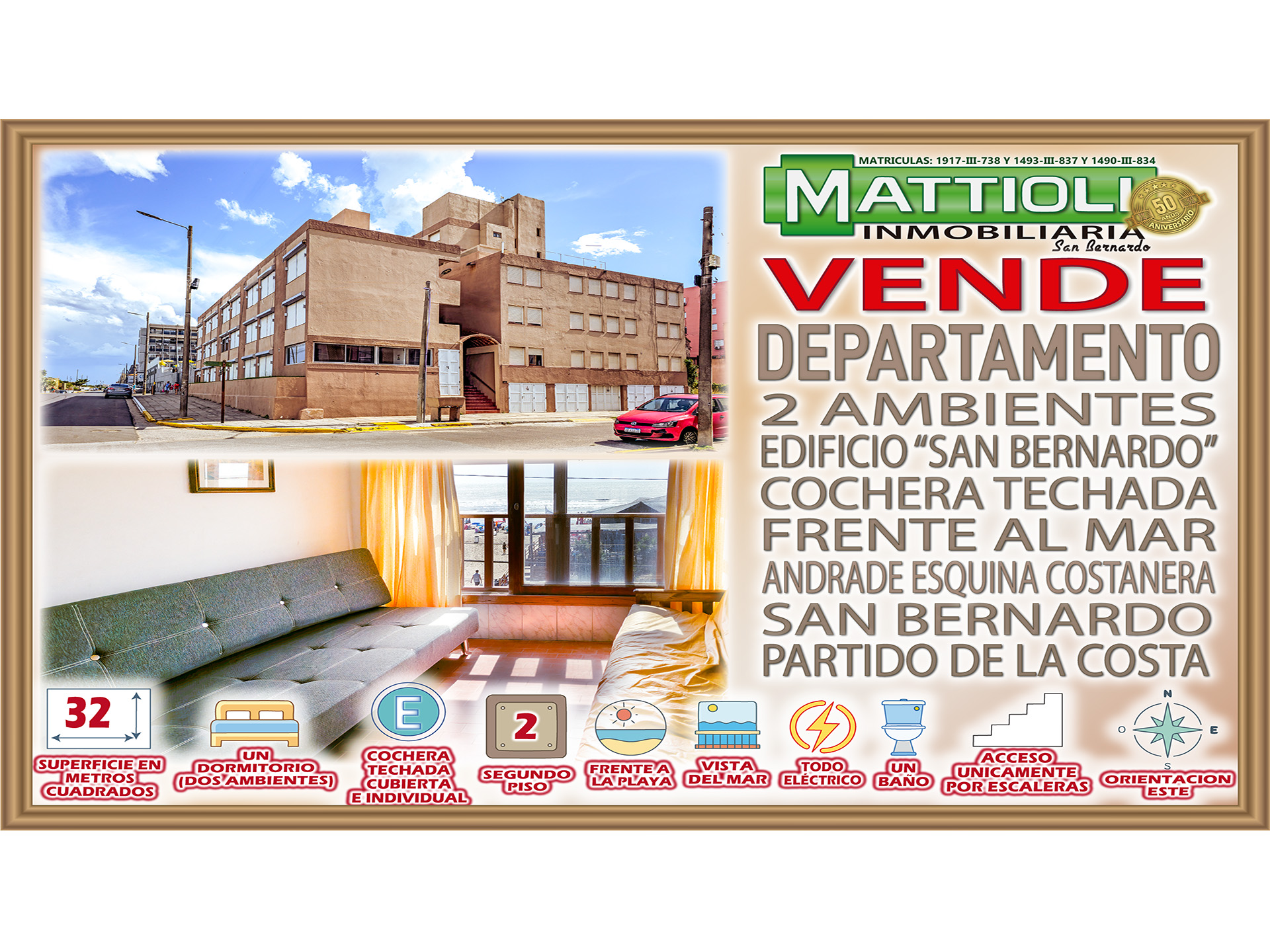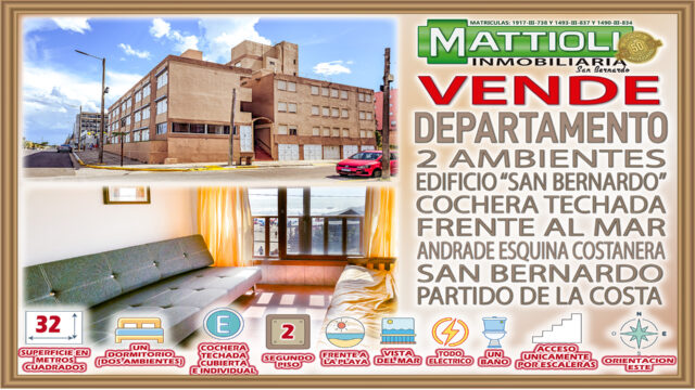 DEPTO DOS AMBIENTES, CON COCHERA Y FRENTE AL MAR –SAN BERNARDO–